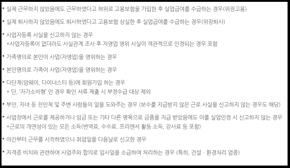 본인이 실업급여 부정수급자인지 모르는 경우도 있으니, 해당하는 경우를 잘 알아 두셔서 불이익이 없도록 하시기 바랍니다.