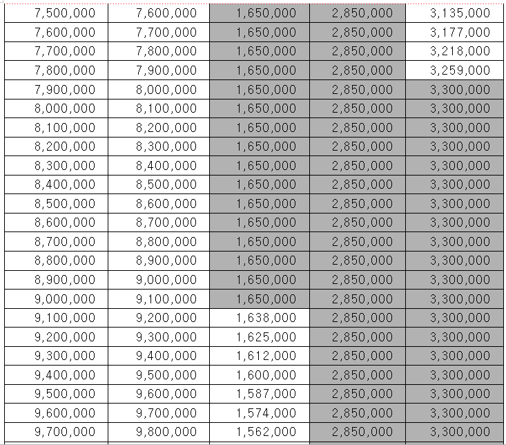 위의 산정표에서 볼 수 있듯이 총급여액이 많다고 해서 더 많이 지급받는 것은 아닙니다. 단독가구의 경우 최대 금액이 165만 원으로 연간 총급여액이 400~900만 원일 때 가장 많은 장려금을 받을 수 있고, 홑벌이 가구의 경우 700~1400만 원일 때 285만 원, 그리고 맞벌이가구의 경우에는 800~1700만 원일 때 가장 많은 330만 원을 받을 수 있습니다.