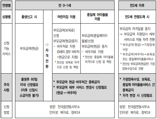- 만 2세 생일이 도래하는 달의 전 달까지 최대 24개월 간 지급됩니다.